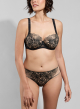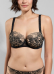 Le soutien-gorge corbeille avec armatures noir du thème Agathe offre un décolleté dégagé très féminin. Ornée de broderies florales à effet tatouage, cette pièce illustre à la perfection la modernité et la sensualité du thème. Un maintien et un galbe parfaits, jusqu'au bonnet G.