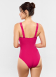 Élégant et intemporel, ce maillot de bain 1 pièce au décolleté plongeant flatte naturellement la poitrine jusqu’au bonnet G. Sa coupe architecturée, ponctuée des pattes signature ornées de boutons dorés martelés, conjugue allure couture et modernité.