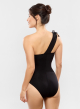 Dit elegante en grafische eendelige badpak met enkele band verleidt met zijn asymmetrisch ontwerp dat de schouders benadrukt. De gestructureerde pasvorm, onderstreept door een brede, corrigerende ceintuur, vormt het figuur. Een model dat is ontworpen om couture en comfort te combineren, langs het strand en tijdens het zwemmen.