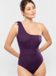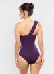 Iris: a deep, vibrant and modern purple, giving a touch of audacity to your silhouette.This elegant, striking one-piece swimsuit with a single strap features a stunning asymmetrical shape that accentuates the shoulders. The structural cut, emphasized by a wide, body-shaping waistband, sculpts the silhouette. This piece is designed to combine a couture look with comfort, perfect for both sunbathing and swimming.