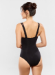 The one-piece, flat-tummy effect swimsuit enhances the figure for a feminine look that is understated yet sophisticated. The draping across the front with reinforced lining creates a flat-tummy effect. This comfortable and sculpting piece guarantees unbeatable support up to cup size G.